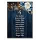 Un design de mariage élégant avec une calligraphie élégante complétée par un magnifique bois bleu, des lampes à cordes de jardin et un bleu blanc floral avec parties scintillant d'or.