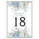 Cette carte de numéro de table rayonne sur le raffinement doux, mêlant des fleurs délicates à une disposition propre et accueillante. Le haut et le bas sont des bouquets complexes d'hydrangées et de roses, peints dans les tons pastel de bleu, de blanc crémeux et de verdure fraîche, une palette idéale pour des événements romantiques ou vintages