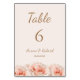 Table Blush Peach Mariage Rose fleuri Numéro de tableau