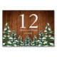 Carte de numéro de table élégante. Bois brun rustique, neige arrière - plan et forêt enneigée. Style rustique vintage et cosy. D'autres articles sont disponibles dans ce style dans notre magasin. Vous pouvez modifier la conception plus loin, modifier les couleurs, les polices et ajouter du texte en cliquant sur le lien "customiser plus loin".