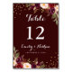 Table Bourgogne Gold Confetti Floral Mariage Numéro de t