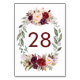 Table Burgundy Rouge Floral Mariage Numéro de tableau Ca