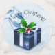 Ajoutez vos tables pour vos fêtes de fin d'année et rassemblez-vous autour de cette table cadeau de Noël bleu festive. Confetti design dispose d'un cadeau de Noël bleu vif orné de flocons de neige tombant contre un élégant parchemin et arrière - plan feuille. Autres cadeaux et objets de vacances disponibles avec ce design aussi.