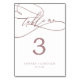 Ce numéro de table de calligraphie or rose romantique est parfait pour un mariage simple. Le design classique moderne comprend des tourbillons fantaisistes et des fleurs fantaisistes avec une magnifique typographie de feuille d'or en faux rose. La carte s'imprime à l'avant et à l'arrière (double face). Ajoutez chaque numéro de table dont vous avez besoin à votre panier individuellement. Remarque : Ce design ne présente pas de véritable feuille d'or rose. C'est un graphisme de haute qualité fait pour ressembler à du papier doré rose.