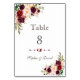 Table Charm Bourgogne Rouge Marsala Floral Numéro de tab