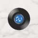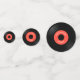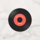 Table Confetti de design vintage Vinyl Records avec texte personnalisable (sur les étiquettes rouges) et notes musicales amovibles sur les étiquettes bleus.