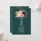 Guidez vos invités avec élégance en utilisant ce plan de table de mariage vert émeraude avec des floraux bordeaux, rose et pêche. Un design boho romantique avec des détails d'aquarelle botanique, parfait pour les mariages d'automne et les schémas de couleurs de tons de bijoux. Personnalisez le numéro de table et les noms des invités pour une réception parfaitement coordonnée. S'harmonise parfaitement avec la suite complète Rustique Émeraude & Floral Bordeaux.