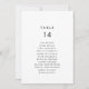 Ces cartes de tableau de numéros de table avec typographie chic sont parfaites pour un mariage moderne. Le design simple présente une typographie classique minimaliste noire et blanche avec une touche rustique bohème. Personnalisable dans n'importe quelle couleur. Gardez le design minimal et élégant, tel quel, ou personnalisez-le en ajoutant vos propres graphiques et illustrations. La carte s'imprime sur le recto et le verso (double face).