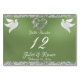 Ce design romantique présente un élégant arrière - plan vert sauge avec des bordures de parties scintillant, coeur & colombes avec une place pour le numéro de table, les noms des couples et la date de l'événement. Disponible en plusieurs couleurs pour votre thème mariage. (La Parties scintillant est simulée dans l'illustration). Conçu pour coordonner avec la collection Mariage "Two Shall Become One - Doves, Heart & Parties scintillant". Pour modifier les détails, cliquez sur "Personnaliser". Pour déplacer le texte ou modifier la taille, la police ou la couleur du texte, cliquez sur "Cliquez pour customiser plus loin".