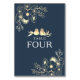 Vintage, élégant, chic, unique or et bleu marine numéro de table mariage, avec couple romantique inséparables, dentelle dorée fleurie et script de calligraphie moderne.