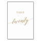 Table Élégante calligraphie Or Numéro de tableau Vingt