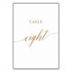 Cette élégante calligraphie dorée table huit numéro de table est parfaite pour un mariage simple. Le design neutre présente une carte minimaliste décorée avec une typographie romantique et fantaisiste de feuille d'or. La carte s'imprime à l'avant et à l'arrière (double face). Les autres numéros de tableau de la collection sont vendus séparément. Remarque : Ce design ne comporte pas de véritable feuille d'or. C'est un graphisme de haute qualité fait pour ressembler à du papier doré.