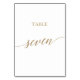 Cette élégante calligraphie dorée table sept numéro de table est parfaite pour un mariage simple. Le design neutre présente une carte minimaliste décorée avec une typographie romantique et fantaisiste de feuille d'or. La carte s'imprime à l'avant et à l'arrière (double face). Les autres numéros de tableau de la collection sont vendus séparément. Remarque : Ce design ne comporte pas de véritable feuille d'or. C'est un graphisme de haute qualité fait pour ressembler à du papier doré.