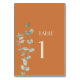 Ce panneau de numéros de table de mariage en terre cuite Eucalyptus Deco offre un style boho minimaliste et rustique, à l'ouest ou le désert. Le feuillage succulent à l'eucalyptus vert sauge simple vient compléter l'arrière - plan d'automne en terre cuite, tandis que le type art déco combiné à la verdure botanique et à l'orange brûlé crée une polyvalence à combiner avec d'autres produits colorés de cette collection. Ces combinaisons de couleurs vous feront découvrir les invités invités à la célébration de votre mariage.