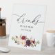 panneau de boissons mariage floral aquarelle bordeaux et rousses. Le texte et les couleurs peuvent être modifiés.