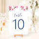 Elégante florale printanière avec une couleur d'aquarelle de cerisiers en fleurs dans le rose vif et des tons rose vif avec des pétales épars. Le texte du tableau mariage de script bleu est personnalisable pour les polices et les couleurs.