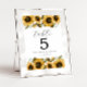 Numéro de table mariage rustique et moderne avec aquarelle illustration de tournesols jaunes avec souffle bébé. Parfait pour un mariage d'été.