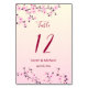 Un joli cerisier rose fleurit sur un arrière - plan rose. Avec des zones de texte pour ajouter les noms, la date et le numéro de table. L'amour est la plus pure forme de connexion que deux personnes peuvent partager. Le meilleur signe qui les lie tous les deux dans la forme sainte de l'amour est le mariage. Avec le design impeccable de fleurs de cerisiers qui signifie amour, espoir et collage sous la forme de la Fleur Nationale du Japon, votre décoration mariage peut être absorbée par plusieurs encoches.