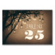 Cette carte de numéro de table (ou carte de place) présente des pots de mason de lucioles et des lampes à cordes suspendues sur les branches de l'arbre brun. Carte de numéro de table parfaite pour les thèmes de mariages campagnards rustiques.