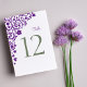 Jardin secret fleuri violet, carte de numéro de table mariage. Customisez avec le numéro de table. Double face. Conçu pour correspondre à notre collection Lovebirds Secret Garden Wedding Collection.