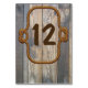 Carte numéro de table de réception de mariage à thème occidental fait dans une clôture en bois patiné apparence arrière - plan. Les graphiques d'une corde brune attachée à des noeuds, en cercle, ont un numéro de table marron au milieu. Personnalisez le numéro de chaque table à la réception.
