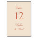 Mariage beige paille en terre cuite Numéro de table avec lettrage de style traditionnel élégant. La conception se copie automatiquement de l'autre côté de la carte afin que les deux côtés soient identiques. Veuillez modifier le nom du couple et le numéro de table dans le modèle de personnalisation en ligne, selon le cas. Ajoutez individuellement au panier pour chaque numéro dont vous avez besoin (veuillez modifier le numéro et les noms à chaque fois).