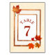 Feuilles automnales Mariage d'automne Carte de numéro de table