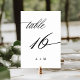 Tableau 16. Veuillez vérifier tous les numéros disponibles. | Numéro de table de mariage de calligraphie tourbillonnant romantique et élégant avec monogrammes. Pour une personnalisation plus avancée de cette conception, cliquez sur le BOUTON OUTIL DESIGN BLEU ci-dessus !