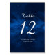 Cette carte de numéro de table céleste dispose d'un bel arrière - plan d'espace bleu profond avec des étoiles et des polices blanches élégantes. Ajoutez vos propres détails en utilisant le modèle fourni dans le menu personnaliser. Cela fait partie de la suite mariage à thème céleste qui comprend l'invitation, l'enveloppe, et d'autres essentiels.