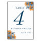Table Mariage des fleurs bleues et orange Numéro de tabl