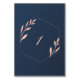 Cette suite de Faire-part de mariage a une police rose vif et un feuillage contre un arrière - plan de marine.