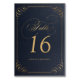 Élégant script de calligraphie manuscrite et cadre fleuri en bleu marine et couleur faux or, propre et formel, grandes cartes de numéro de table mariage pour mariage vintage, mariage traditionnel, et mariage classique toute l'année. Voir toutes les pièces correspondantes dans la collection ci-dessous.