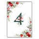 Ce Noel Table Number présente le numéro 4 décoré de baies sauvages et de feuillage d'arbustes dans les couleurs traditionnelles de Noël et décoré d'un cadre de feuillage forestier et de baies rouges juteuses avec arrière - plan blanc. Profite-en.