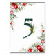 Ce Noel Table Number présente 5 baies sauvages et feuillage d'arbustes décorés dans les couleurs traditionnelles de Noël et décorés d'un cadre de feuillage forestier et de baies rouges juteuses avec arrière - plan blanc. Profite-en.