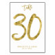 Cartes de numéro de table mariage - Numéro 30 - avec effet feuille d'or (faux, imprimé comme image) et texte personnalisable - vous pouvez ajouter le nom de la mariée et du marié et la date du mariage imprimé sur l'arrière - plan blanc