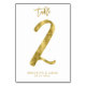 Cartes de numéro de table mariage - Numéro 2 - avec effet feuille d'or (faux, imprimé comme image) et texte personnalisable - vous pouvez ajouter le nom de la mariée et du marié et la date du mariage imprimé sur arrière - plan blanc