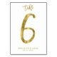 Cartes de numéro de table de mariage - Numéro 6 - avec effet feuille d'or (faux, imprimé comme image) et texte personnalisable - vous pouvez ajouter le nom de la mariée et du marié et la date du mariage imprimé sur arrière - plan blanc