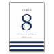 Des cartes numériques simples et chic en bleu marine classique, gris doux et blanc immaculé présentent un trio de bandes d'inspiration nautique le long du fond. Personnalisez avec vos noms et votre date de mariage. Le design se répète à l'envers. Coordonné avec notre suite de faire-part de mariage Mix Nautiques.