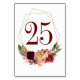 Cartes de numéro de tableau mariage pour les fleurs rouges orange et bordeaux brûlés