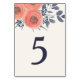Nos cartes de numéro de table fleurie romantique et moderne comprennent des fleurs de pavot à l'aquarelle dans la pêche chic de corail entourée de feuilles et bourgeons dans bleu marine poussiéreux et vert chasseur défraîchi, avec votre numéro de table en bleu minuit. Le design se répète à l'envers. Coordonnées avec notre suite de faire-part de mariage Peach Poppies.