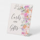 Fleurs sauvages pastel romantique printemps nuptiale cartes de douche nuptiale et cadeaux signe de table avec de jolies fleurs de campagne sauvage en rose, pêche, violet, lavande, feuilles verts et plus, avec une typographie de script brossé sur un élégant éditable arrière - plan rose pastel doux.