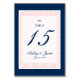 Rose, bleu marine traditionnel Mariage Numéro de table Carte avec une police de script élégante. BlissfulWedding © à Zazzle. Personnalisez avec les noms des mariés et des mariés et la date du mariage.