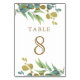 Elégante carte de numéro de table avec de beaux feuilles et de la typographie moderne.
