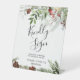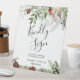 À feuillage persistant de Noël et baies fleurie avec une demande pour signer le livre d'or mariage. Portez attention au livre d'or avec ce joli panneau afin que vos invités puissent laisser leurs bonnes pensées et leurs souhaits.