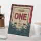 Premier anniversaire du bûcheron, signe de la faveur sauvage Célébrez votre premier anniversaire avec ce premier anniversaire personnalisé du bûcheron, signe de la faveur sauvage. Doté d'un arrière - plan en papier kraft et en plaid rouge et noir avec des silhouettes d'ours et de haches.