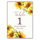 Sunflower Elegant Bright Watercolor Boho Flower Mariage Numéro de table