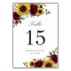 Sunflowers Bourgogne Floral Rustic Numéro de table. Elégant tournesol verdure Mariage Numéros de table