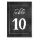 Thème de mariage de tableau noir tendance Numéro de tableau. Numéro de tableau vintage avec typographie écriture de craie et ligne de bordure classe. Décorations élégantes pour la réception du lieu. Aidez les clients à trouver rapidement leur siège. Une partie de la collection plus grande avec des designs assortis. Imprimé sur deux côtés.