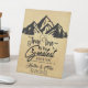 Ce joli panneau de table peut être customisé avec les noms de la mariée et du marié et la date du mariage.