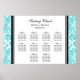 Elégante et contemporaine personnalisable dix tables de sièges pour mariage en moderne turquoise turquoise bleu et blanc classique damassé motif vintage. Customisez avec le nom de vos invités pour créer un tableau de sièges unique pour votre mariage.